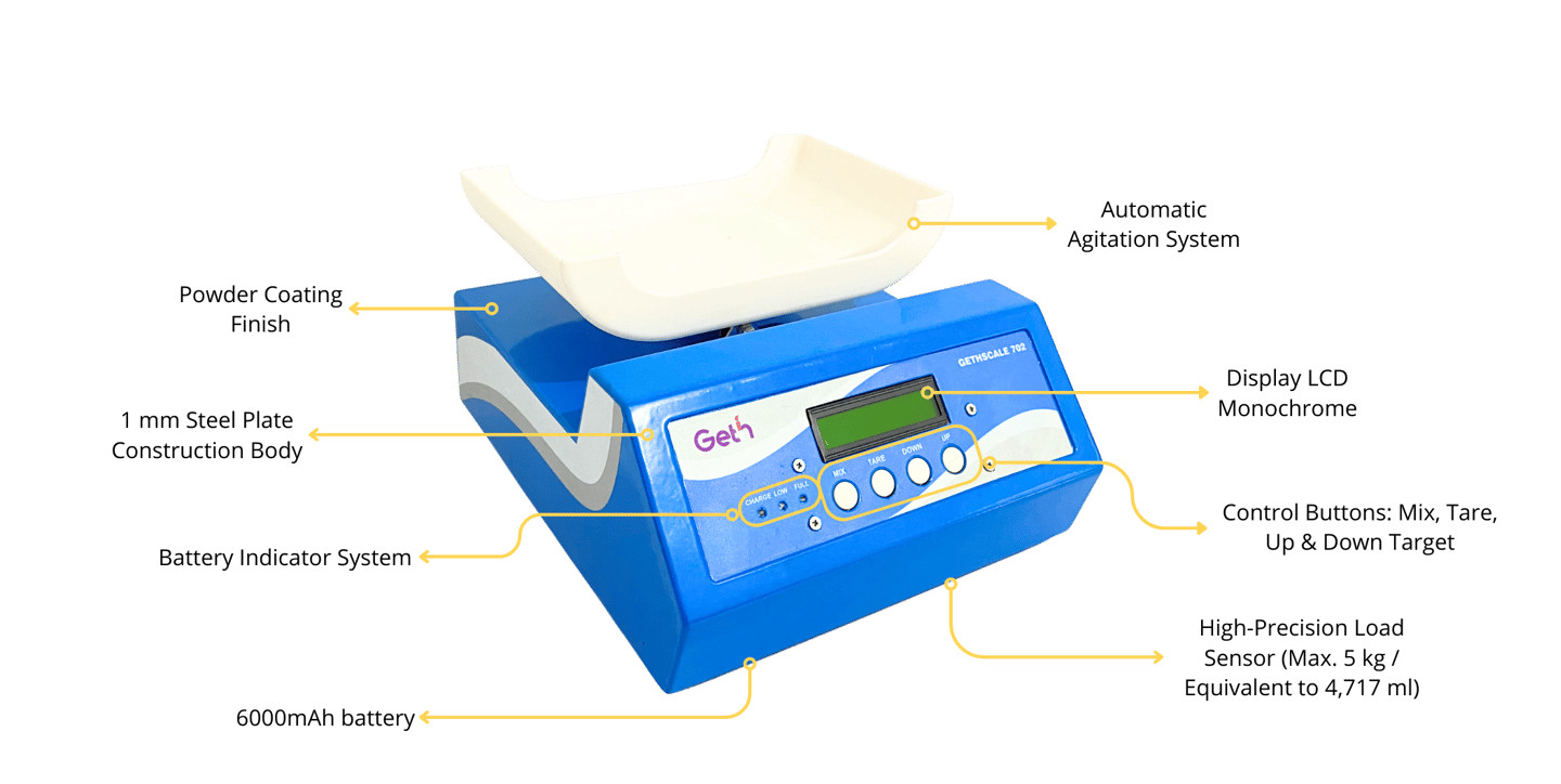 Gethscale is a device designed to measure and monitor blood volume with high accuracy—an essential requirement in various medical procedures, especially blood transfusions. Equipped with advanced sensors, this device minimizes errors in blood volume measurement, delivering more precise and reliable results. Unlike the 701 series, the 702 series comes with a built-in battery that allows the device to operate for approximately 6 hours.