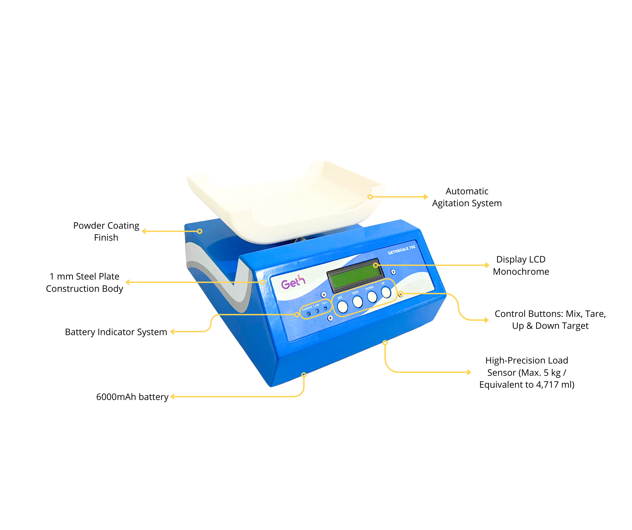 Gethscale is a device designed to measure and monitor blood volume with high accuracy—an essential requirement in various medical procedures, especially blood transfusions. Equipped with advanced sensors, this device minimizes errors in blood volume measurement, delivering more precise and reliable results. Unlike the 701 series, the 702 series comes with a built-in battery that allows the device to operate for approximately 6 hours.