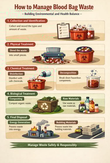 First, ensure that all blood bag waste is properly collected and correctly identified. This includes recording the type and quantity of waste, as well as the collection date. Organized collection helps ensure effective and efficient waste management.